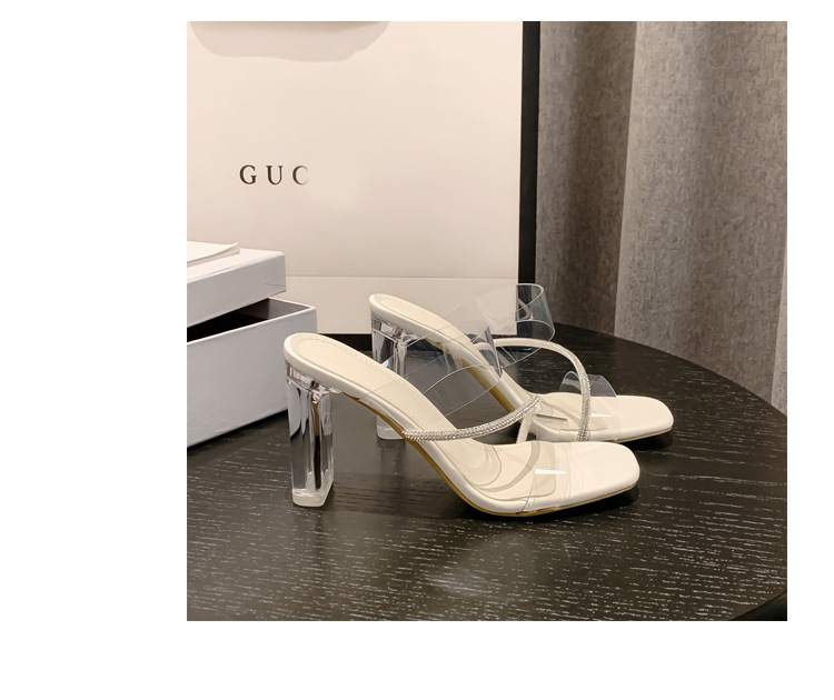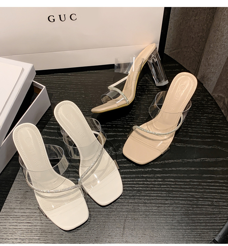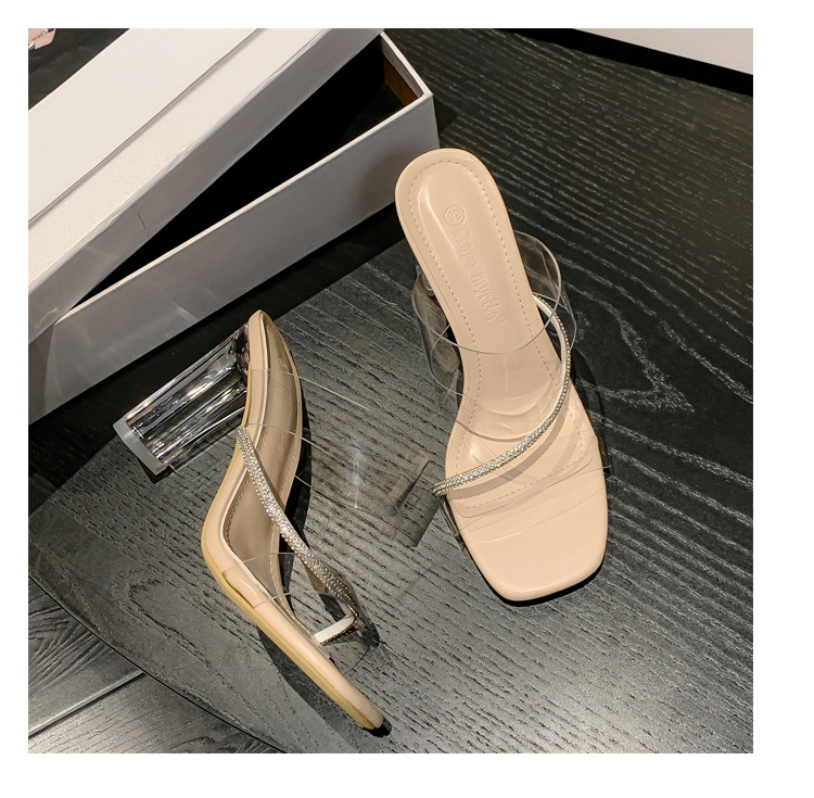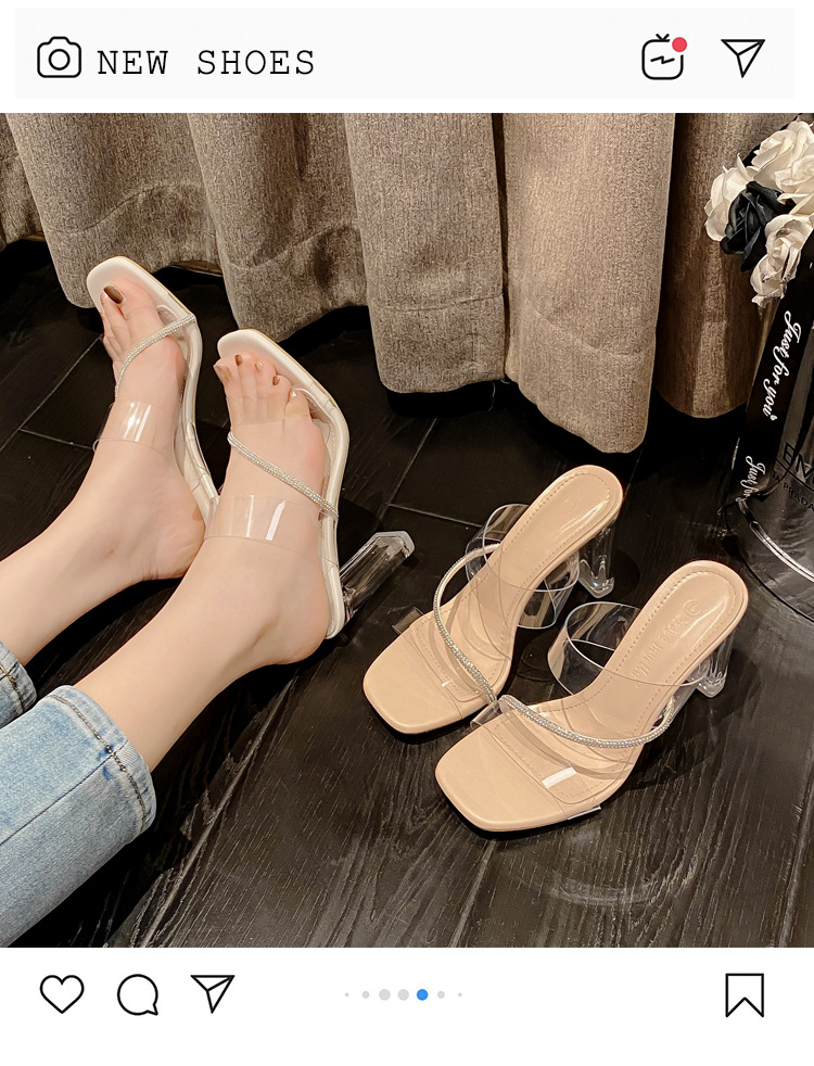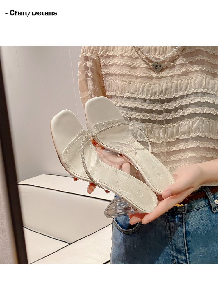 Transparent High-Heeled Sandals For Women 2024 New Summer Diamond-French Style Line With Crystal Slippers To Wear Outside
